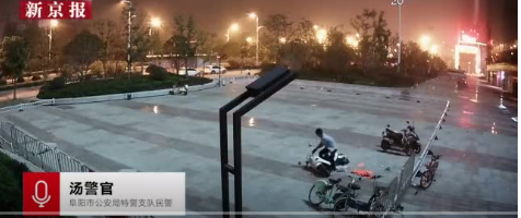 16日凌晨,安徽阜阳,男子吴某某喝醉后在电梯里便溺,将广场围栏扳倒,还盗走一辆电瓶车。