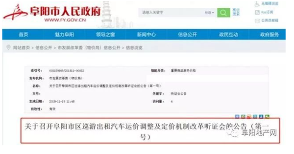昨天,阜阳市人民政府发布消息:市发展改革委(市物价局)拟于近期召开“阜阳市区巡游出租汽车运价调整及定价机制改革听证会”